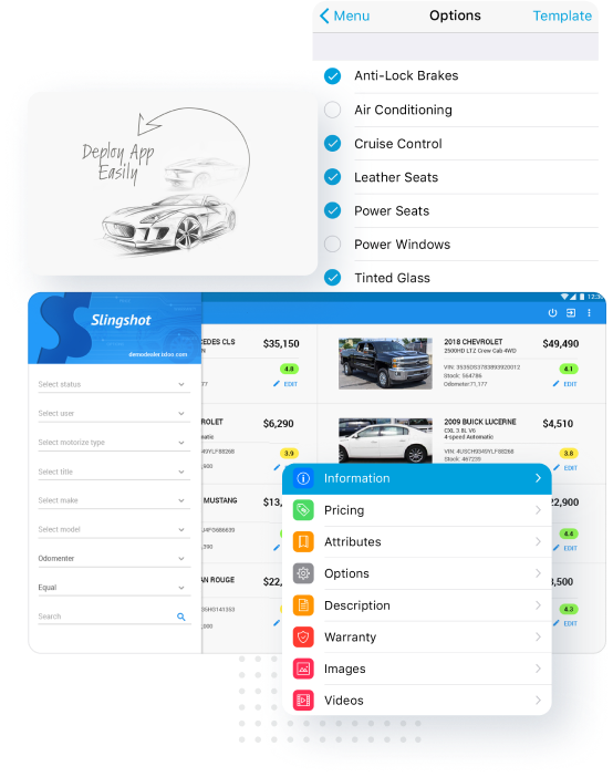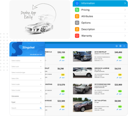Reliable and intuitive software for listing and delisting vehicles, editing and clearing the inventory using mobile devices.