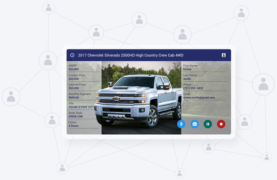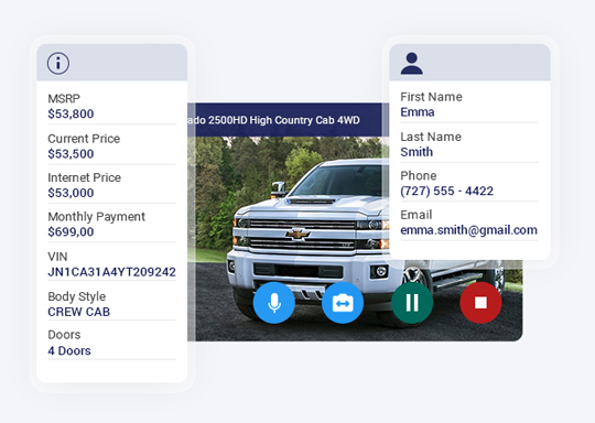 Main vehicle details (financing options included) as well as buyer’s details are listed on the salesperson’s screen for the quick reference.