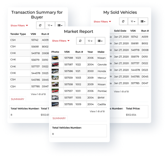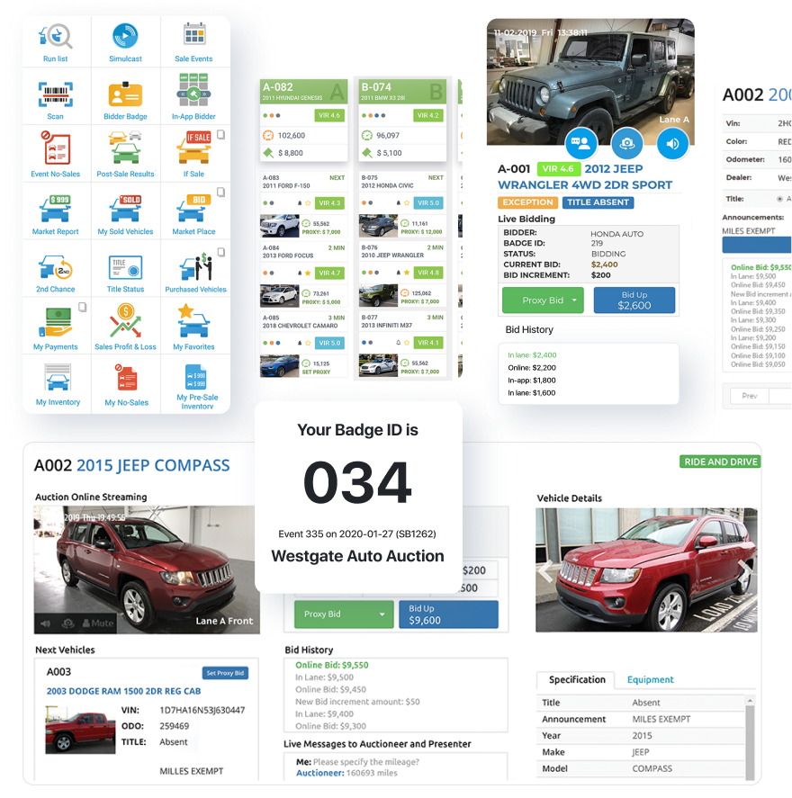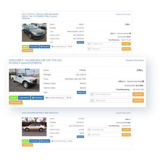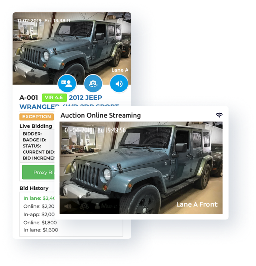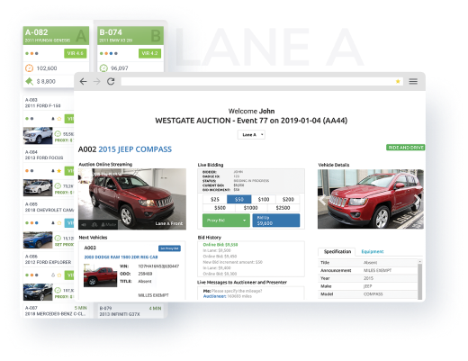 Simcasts™ allows online users to perform all the actions that in-lane visitors do. They can see the stream, inspect the car, bid and finally buy the desired vehicle.